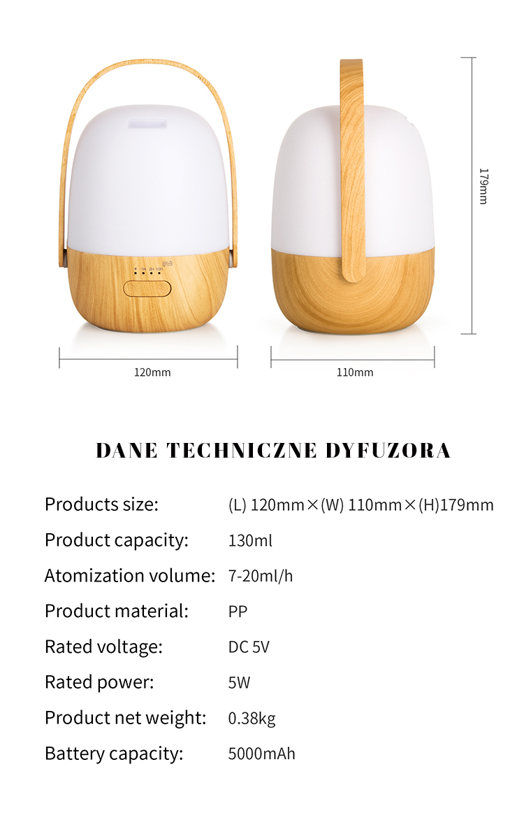 Jego subtelna, „słodka” forma przywodzi na myśl elegancką latarenkę, a wysokiej jakości tworzywo zapewnia trwałość i piękny wygląd na lata. Urządzenie posiada nastrojowe podświetlenie z trzema poziomami jasności, dzięki czemu możesz dopasować atmosferę do każdej chwili — od wyciszającego wieczoru po przytulny poranek.