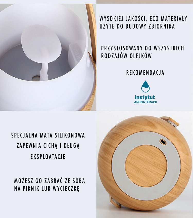 To prawdziwie mobilny nawilżacz ultradźwiękowy z funkcją dyfuzji olejków eterycznych, polecany przez Instytut Aromaterapii z Warszawy. Jedno ładowanie zapewnia aż 2 godziny nieprzerwanej pracy, dając pełną swobodę użycia – gdziekolwiek zechcesz.