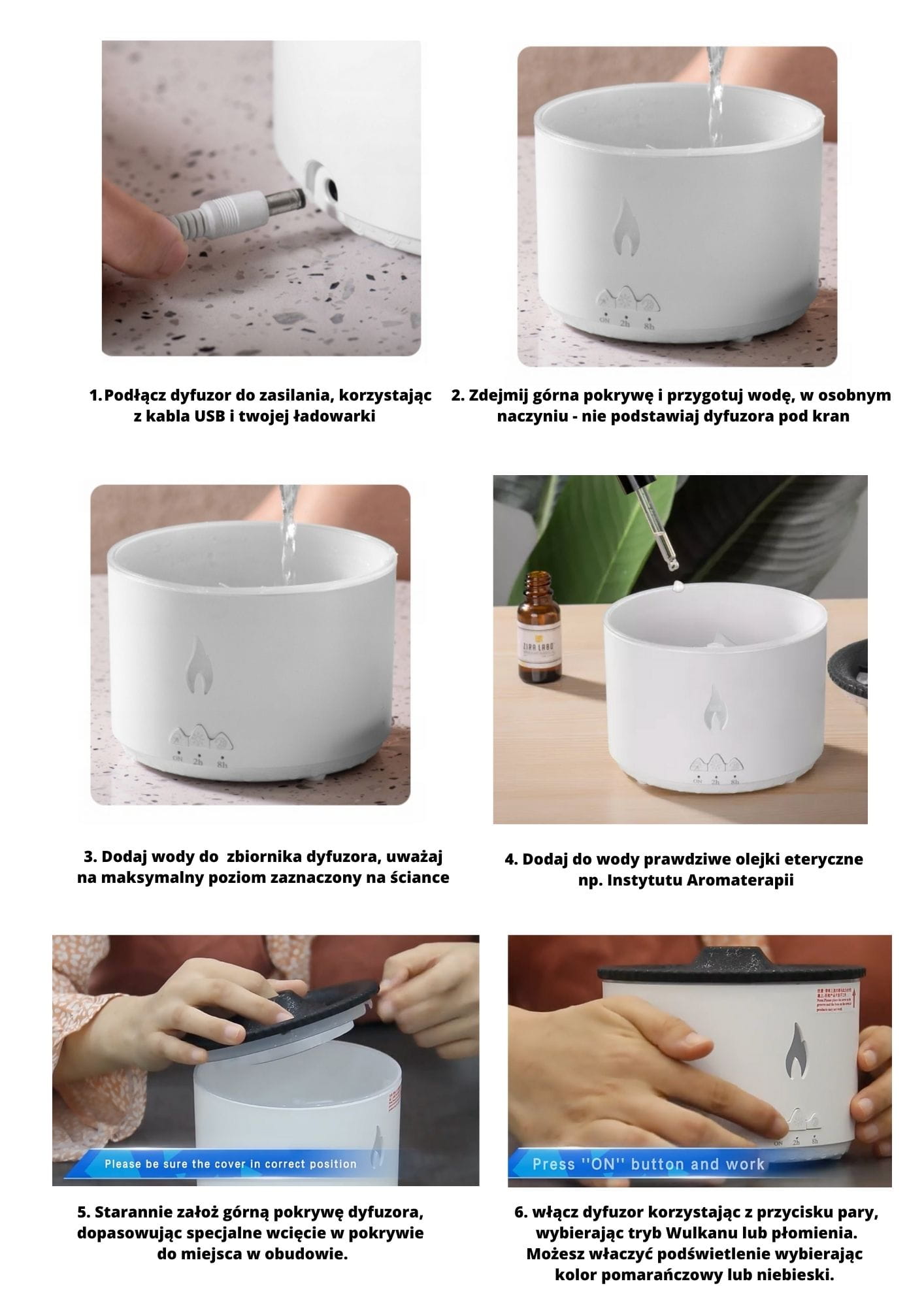 Zdecydowanie najbardziej efektowna nowość na rynku dyfuzorów aroma do olejków eterycznych. Dyfuzor imitujący wyrzutem pary erupcję wulkanu lub efekt płomienia. Samodzielnie przełącza się wybrany tryb. Dodatkowo możliwość zmiany podświetlenia na kolor pomarańczowy lub niebieski. Zachwycający spektakl.