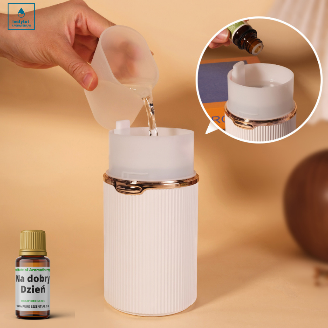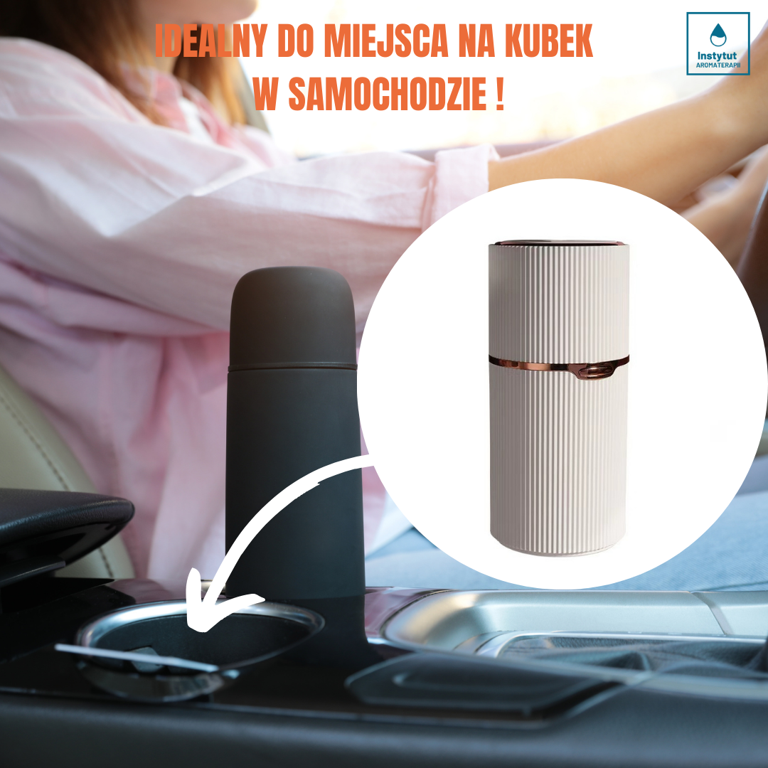 Ten model, ze względu na kształt kubka, zmieści się w samochodowym uchwycie/miejscu na napoje ! Dzięki niemu zapewnisz sobie intensywną aromaterapię podczas jazdy lub nawilżenie powietrza podczas letnich wycieczek. Jego kompaktowy kształt sprawia, że może być Twoim nierozłącznym towarzyszem. Wygodne ładowanie za pomocą USB sprawia, że nie musisz zabierać ze sobą dodatkowych kabli i zasilaczy, po prostu użyj ładowarki od smartfonu lub tabletu.